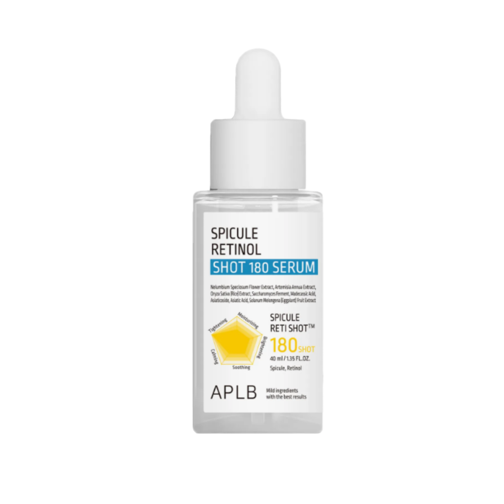 The APLB Spicule Retinol Shot 180 Serum is a high-performance anti-aging formula that merges the renewing benefits of retinol with soothing and hydrating ingredients. Its unique spicule delivery system ensures better absorption, allowing retinol to penetrate deeply for visible results. Gentle yet effective, it supports firmer, smoother, and more radiant skin without causing irritation, making it suitable even for sensitive skin types.