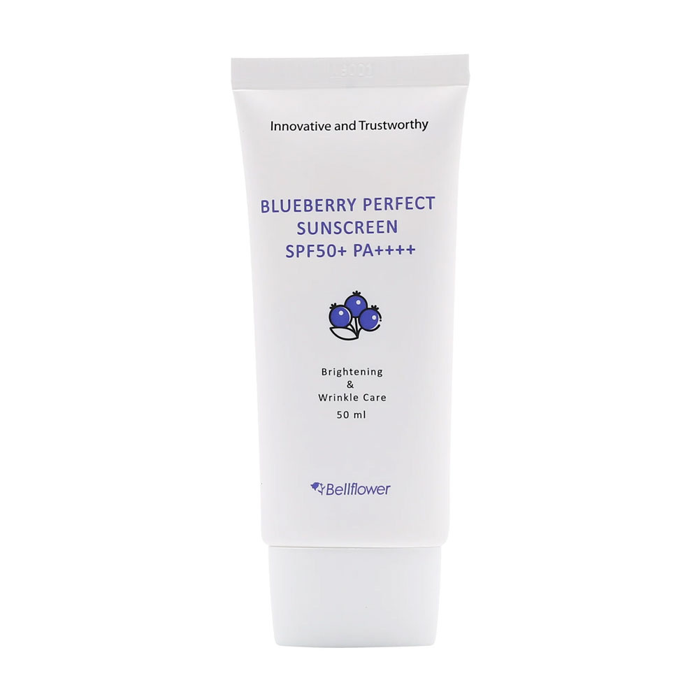 The Bellflower Blueberry Perfect Sunscreen SPF50+ PA++++ is a soft, fresh cream type sunscreen that protects the skin from both UVA and UVB rays. Featuring a combination of chemical and physical filters, it provides broad spectrum protection while remaining gentle on the skin. Enriched with blueberry extract, niacinamide and adenosine, this sunscreen not only shields but also hydrates, soothes and supports a healthier looking complexion. The smooth texture spreads easily, leaves no white cast and layers well for daily use.