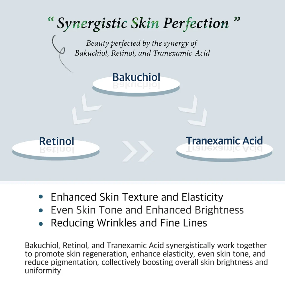 Aloe Barbadensis Leaf Extract, Glycerin, Propanediol, Tranexamic Acid, Bakuchiol, Arbutin, Dimethicone, Isononyl Isononanoate, Caprylic/Capric Triglyceride, Cetearyl Alcohol, Cetearyl Olivate, Sorbitan Olivate, Panthenol, Sodium Hyaluronate, Allantoin, Tocopheryl Acetate, Tocopherol, Squalane, Madecassoside, Ceramide NP, Retinol, Water, Butylene Glycol, Asiaticoside, Madecassic Acid, Asiatic Acid, Rosa Damascena Extract, Melissa Officinalis Leaf Extract, Lavandula Angustifolia (Lavender) Flower Extract, Camellia Sinensis Leaf Extract, ArtemisiaVulgaris Extract, Ammonium Acryloyldimethyl taurate/VP Copolymer, Hydroxyethyl Acrylate/Sodium Acryloyldimethyl Taurate Copolymer, Adenosine, Tropolone, Disodium EDTA, Polysorbate 60, Caprylyl Glycol, 1,2-Hexanediol, Polysorbate 20
