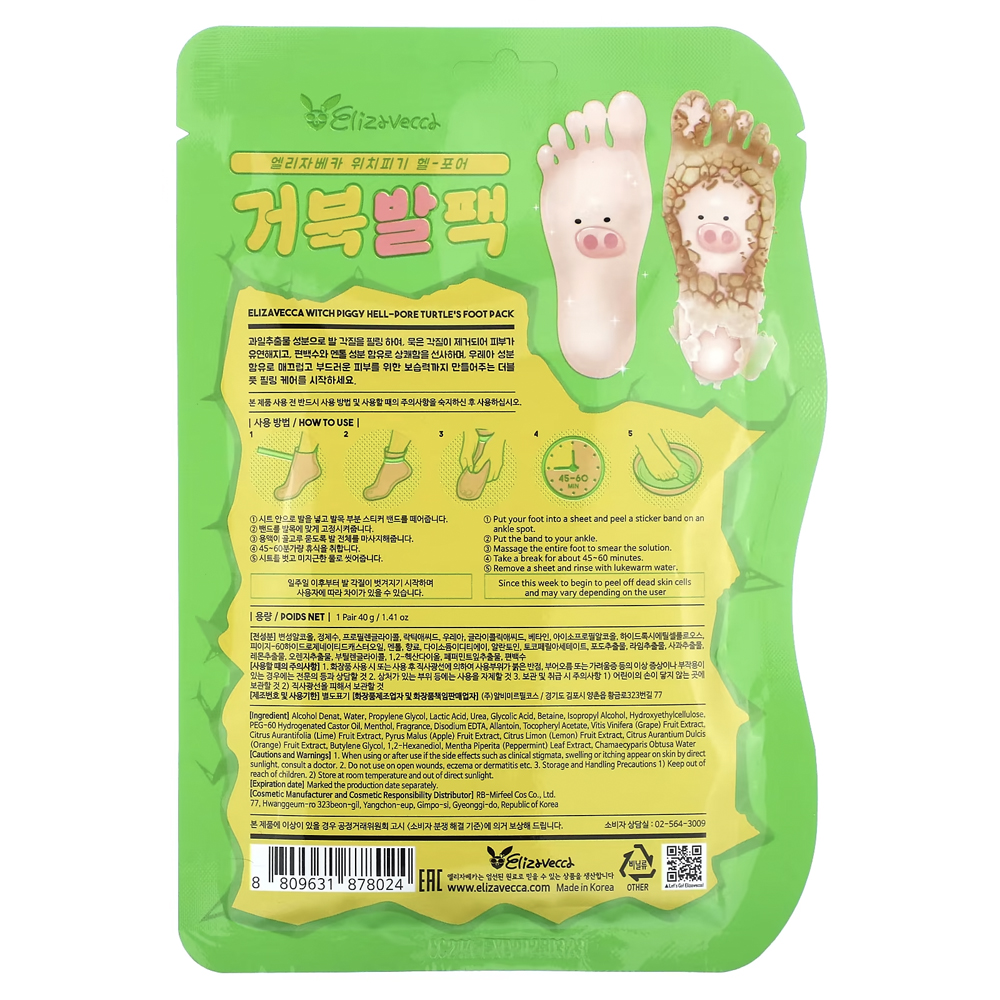 The Elizavecca With Piggy Hell Pore Turtle's Foot Pack provides a foot peeling treatment that exfoliates and smooths calloused feet, leaving them soft and baby-smooth. Infused with five types of fruit extracts, it hydrates the skin; simply wear the masks for 45-60 minutes, rinse, and within seven days, dead skin will naturally shed to reveal soft, smooth feet.