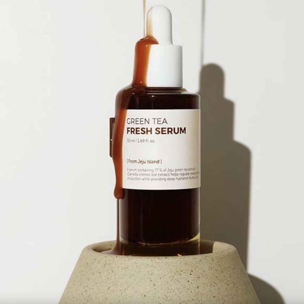 Isntree Green Tea Fresh Serum is a lightweight serum infused with 77% Jeju-sourced green tea extract to amp up moisture levels, brighten skin tone and reduce fine lines
