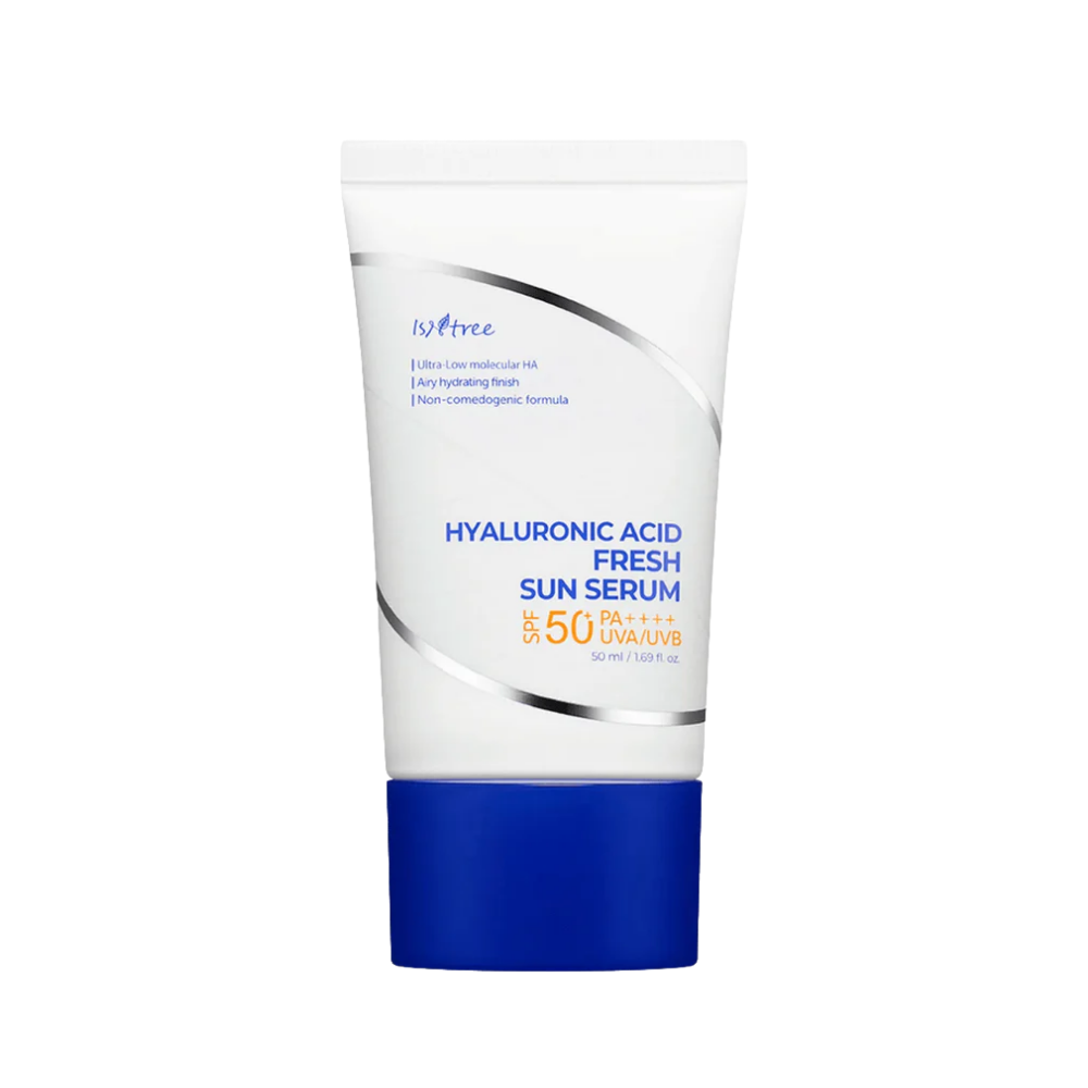 The Isntree Hyaluronic Acid Fresh Sun Serum is a lightweight, refreshing sun serum that deeply hydrates the skin while protecting it from harmful UV rays. Its soft, serum-like texture absorbs quickly without feeling sticky or greasy, making it ideal for daily use and as a base under makeup. With SPF 50+ PA++++, it provides high protection against UVA and UVB rays, helping to prevent sun damage and premature aging. The formula keeps the skin hydrated, strengthens the skin barrier, and leaves it feeling fresh, smooth, and radiant.