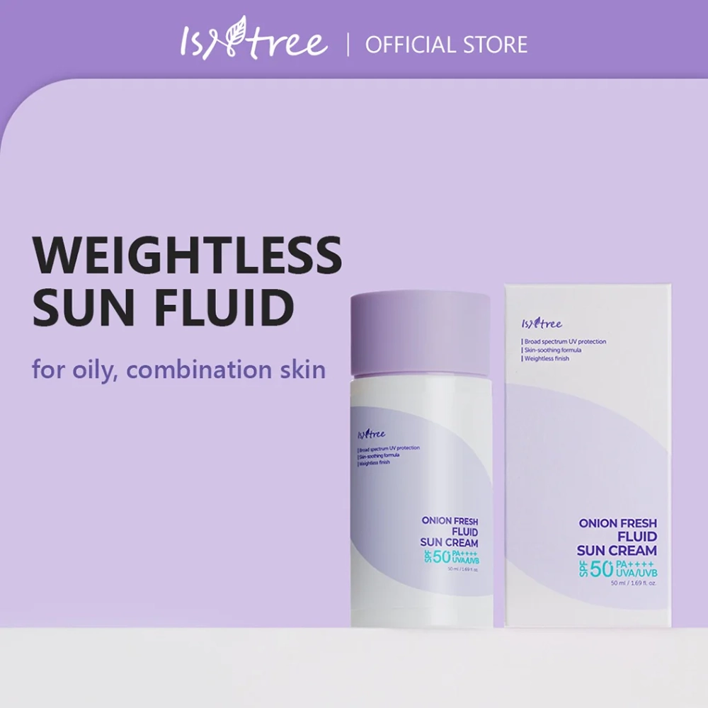 Isntree Onion Fresh Fluid Sun Cream is a lightweight sunscreen with Muan Red Onion Extract and vitamins, providing pore care, and anti-aging benefits. Read more