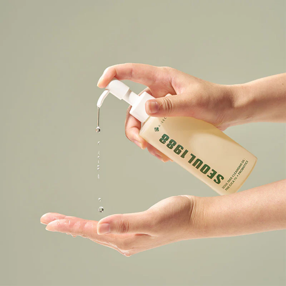 De K-SECRET Cleansing Oil : Pine Cica 1% + Probiotics is een lichte reiniger op oliebasis die make-up, zonnebrandcrème en talg zacht maar grondig verwijdert. De formule met Pine Cica Complex en probiotische extracten helpt de huid te kalmeren en ondersteunt een sterke en gezonde huidbarrière. De olie lost onzuiverheden moeiteloos op en laat de huid schoon, fris en soepel achter zonder een zwaar of vet gevoel.