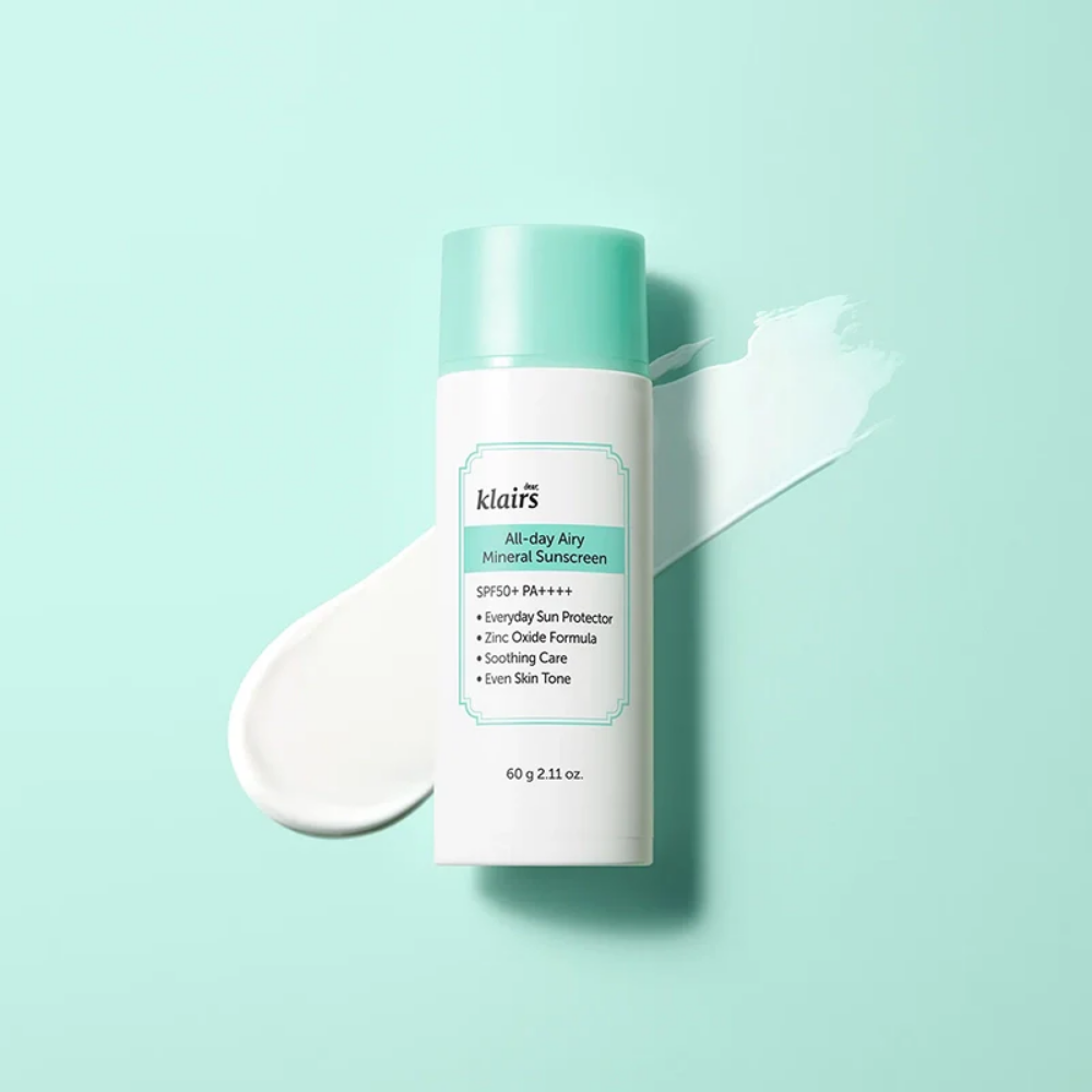 Klairs All-day Airy Mineral Sunscreen is een minerale zonnebrandcrème met SPF50+ PA++++ die de huid dagelijks beschermt tegen schadelijke UVA- en UVB-straling. De formule is speciaal ontwikkeld voor de gevoelige huid en combineert betrouwbare zonbescherming met een ultralichte textuur die comfortabel aanvoelt. Dankzij de minerale filters versmelt de zonnebrandcrème mooi met de huid en helpt ze de teint subtiel te egaliseren, zonder een wit laagje of plakkerig gevoel achter te laten. Ideaal voor dagelijks gebruik, ook onder make-up, met een frisse en natuurlijke finish.