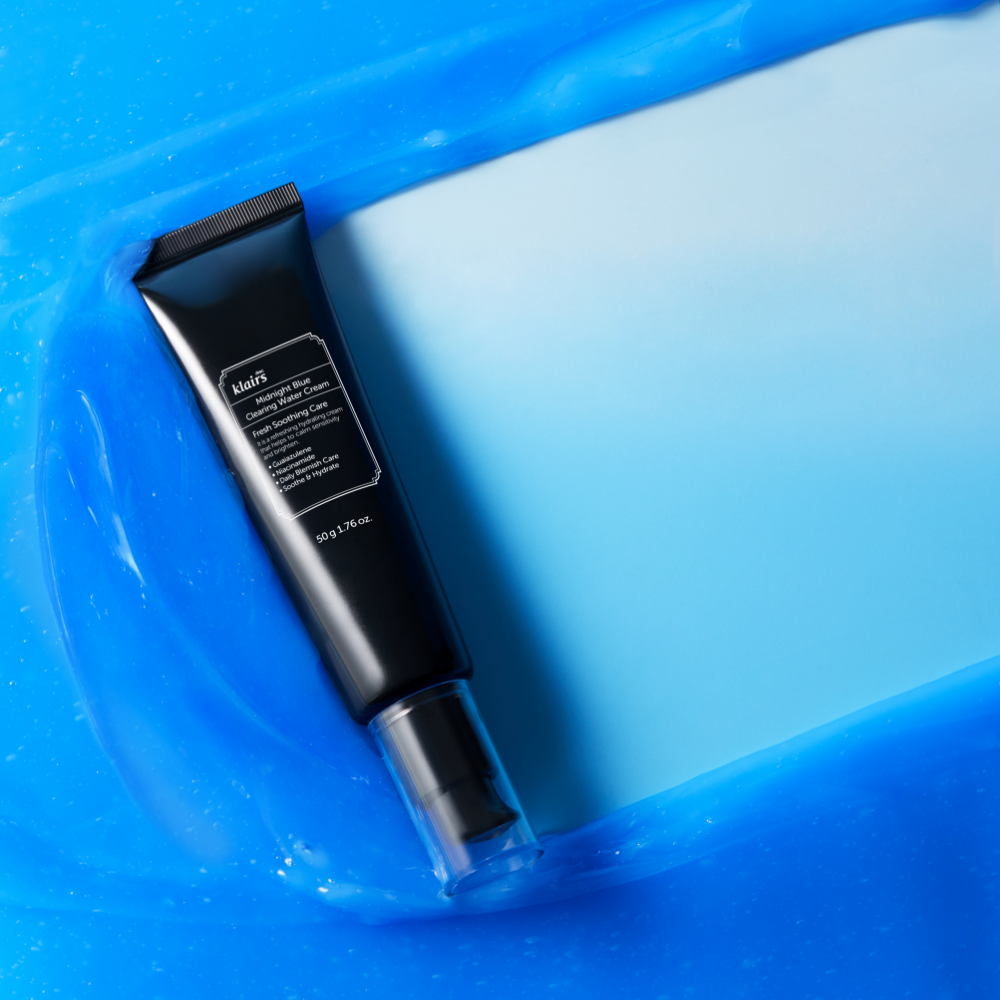 De Dear Klairs Midnight Blue Clearing Water Cream is een lichte, verkoelende watercrème die de gevoelige en geïrriteerde huid helpt kalmeren en herstellen. Dankzij de unieke Blue Calming Formula™ met Guaiazulene, EGF-peptiden en Madecassoside wordt de huidtemperatuur verlaagd en roodheid verminderd. De formule met 8 soorten hyaluronzuur voorziet de huid van langdurige hydratatie, terwijl Niacinamide helpt om pigmentatie en oneffenheden te verminderen voor een helderdere, egale teint.
