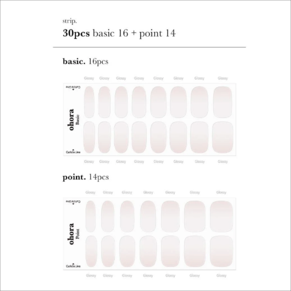 Ervaar pure elegantie met Ohora N Veil, een ontwerp geïnspireerd op de zachtheid en puurheid van bruidssluiers. Deze heldere, frisse manicure combineert blushroze en witte gel in een subtiel ombré-effect dat elke huidskleur flatteert. Perfect voor bruiloften, speciale gelegenheden of een verfijnde dagelijkse look. Dankzij de Ohora Semi Cured Gel Nail Stripscreëer je thuis moeiteloos een professionele gelmanicure met een perfecte pasvorm dankzij het unieke C-curve ontwerp.